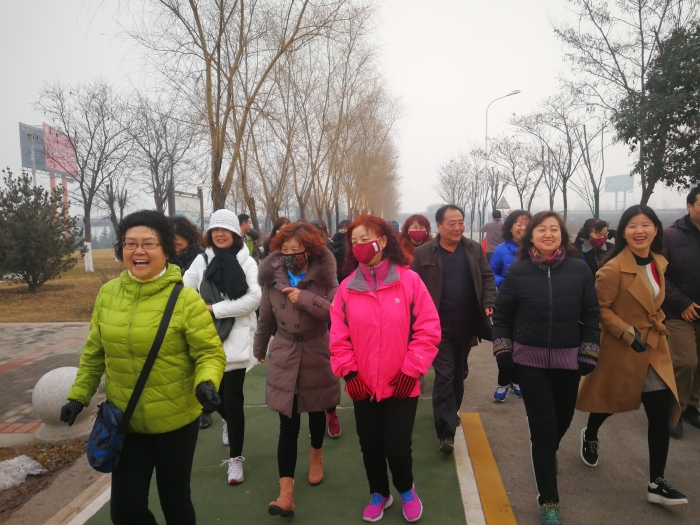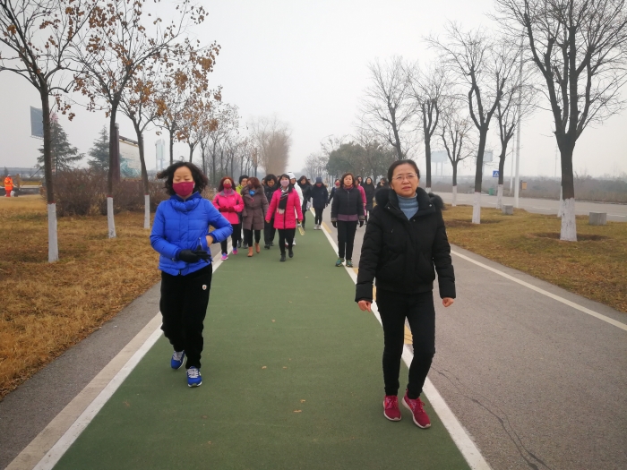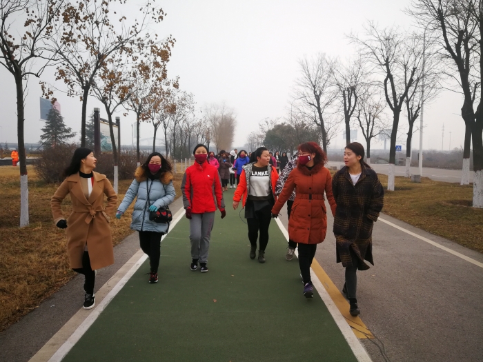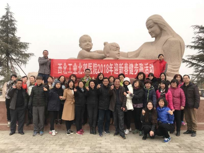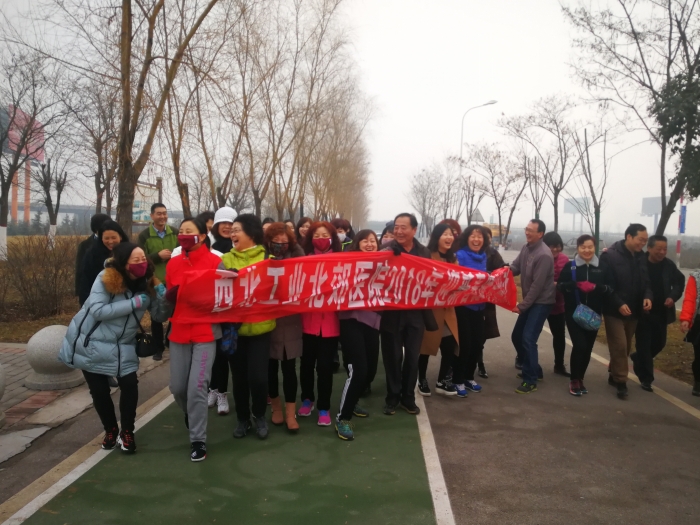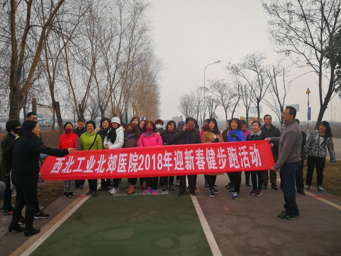 元月20日,西北工业北郊医院的职工来到渭河西安城市段尚宏路入口,举办2018年迎新春职工健步跑比赛。