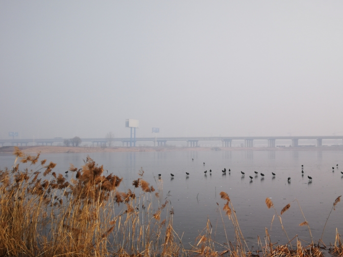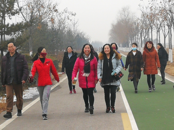 进入腊月的河堤,空气清爽,虽是寒风咧咧,雾霾当罩,但却有冬日的暖阳透过云层照射,每个人心里依旧阳光灿烂。