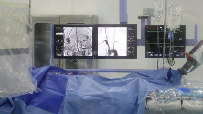 传统治疗方法是使用保守治疗及开颅术,这种治疗方式死亡率、致残率高,风险性大。而本次手术采用的“颅内动脉瘤介入栓塞术”是在体外穿刺,将一根极细长极柔软的微导管直接插入到脑部瘤体内,术中监视屏幕可清楚显示脑血管以及各分支的形态组织情况,且能直接看到脑血管病灶的大小、范围、方向,再推入由白金制成的极精细、极柔软的微弹簧圈,使其完全被填塞,从而根本上消除了再次破裂的可能,既免除了开颅手术之苦,而且风险性小,恢复快,后遗症少,极大地改善了患者的愈后情况。