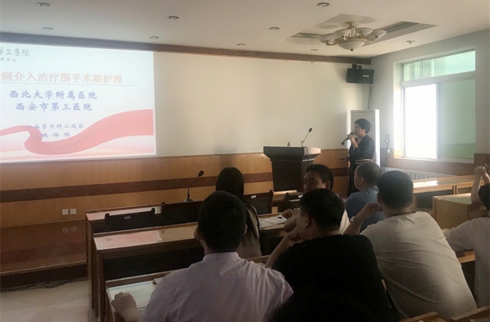 2018年5月25日下午4点,周至联合医院举办了以“心血管造影及介入治疗”为主题的学术活动。西北大学附属医院心血管内科程康主任、袁平年主任、冀永春主任、姚海荣护士长等专家在会上对心血管介入治疗的相关知识进行了专题讲解。