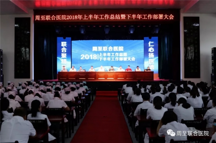 7月13日下午,周至联合医院召开2018年上半年工作总结暨下半年工作部署大会,集团董事长、院领导班子及医、护、技、后勤等300余人参加会议,会议由曹新历院长亲自主持。